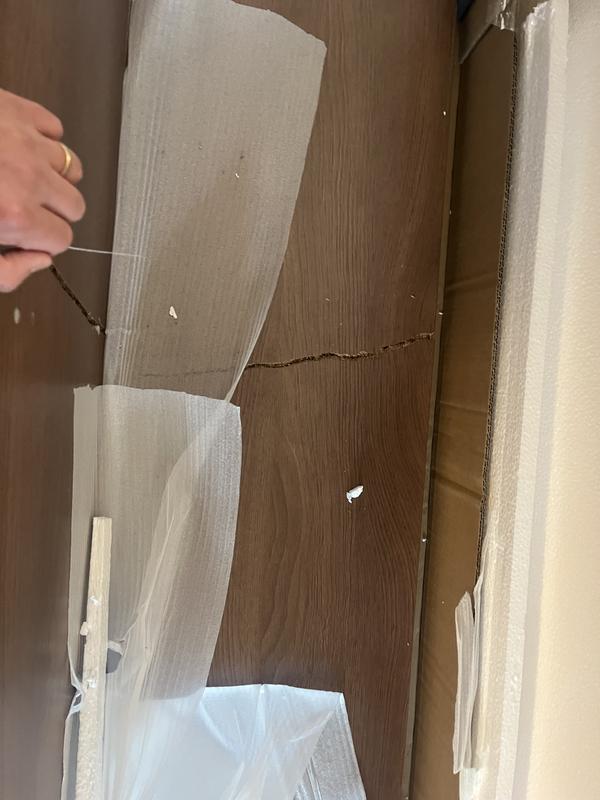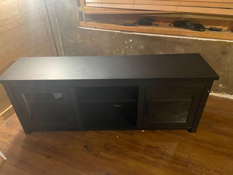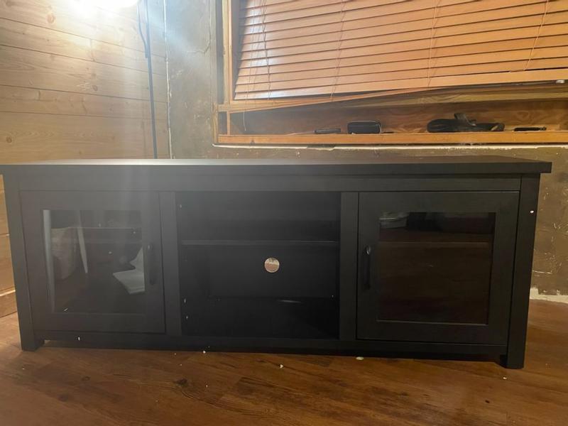This item was damaged and not what I expected. The wood did not look real, and I didn't get much further than unpacking the top of the piece because that was what was damaged and is the front of the TV stand. Not something you can hide.