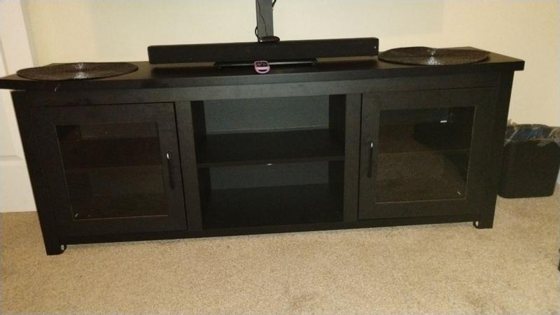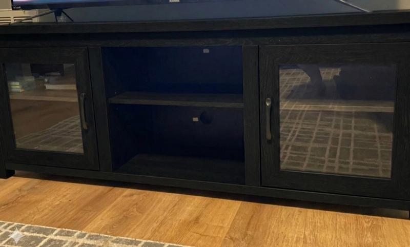 It was very easy to put together. Is a little heavy but not to much for 2 people. Fits perfect for my 65 inches tv. Very spacious and great value. Love my new stand ❤️