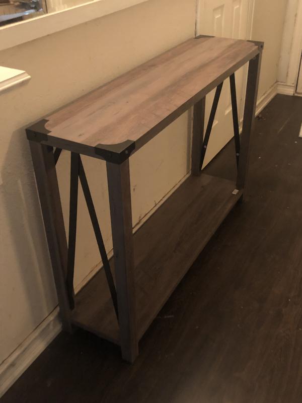 I love this farmhouse console. The product is very good quality. The modern look is amazing it gives my house a pop. I love the details here. It was easy to assemble and it's a good size. I placed it on my hallway entrance and it looks so beautiful.