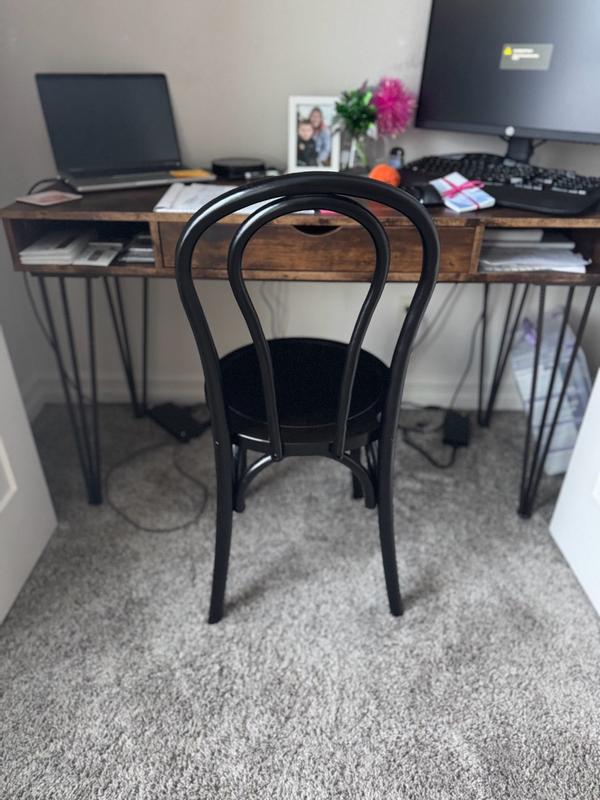 I love this little chair! I was needing a smaller sleek chair for my black desk and this one is perfect! It has a nice weight to it yet it’s still light enough to pick up and move. The structure of the chair really is great. And the back isn’t flimsy.