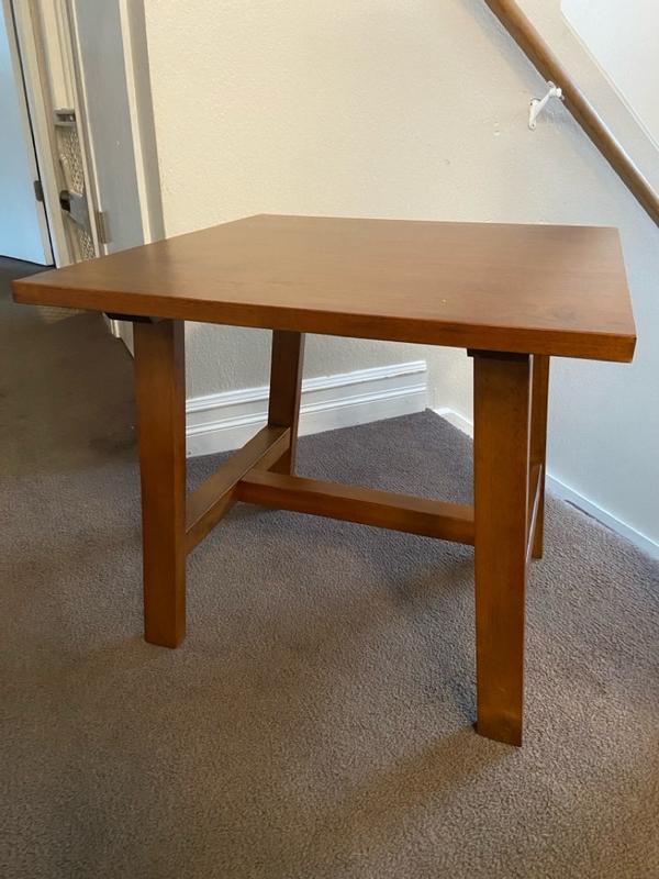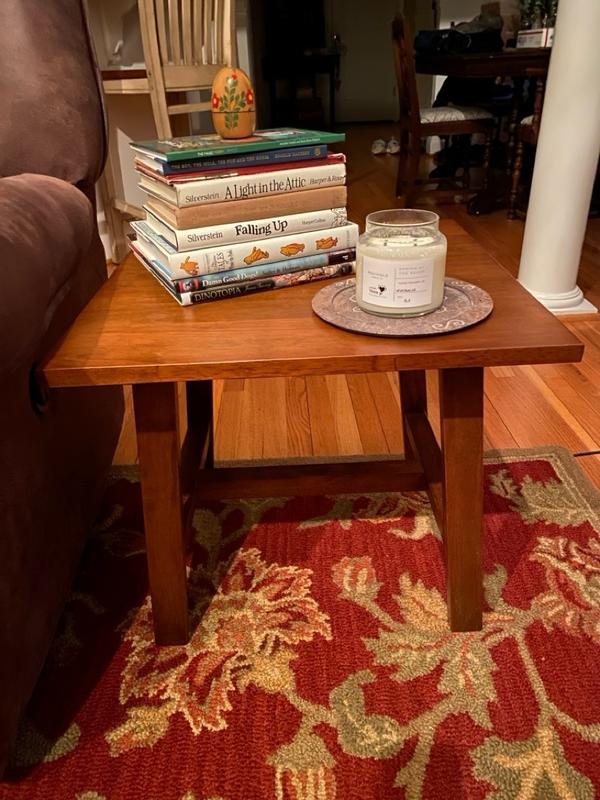 Before I review this, when you purchase you have to assemble the table. It is easy to assemble yourself. It’s solid wood too, it’s good quality material. It’s a simple beautiful end table and it’s easy to clean.