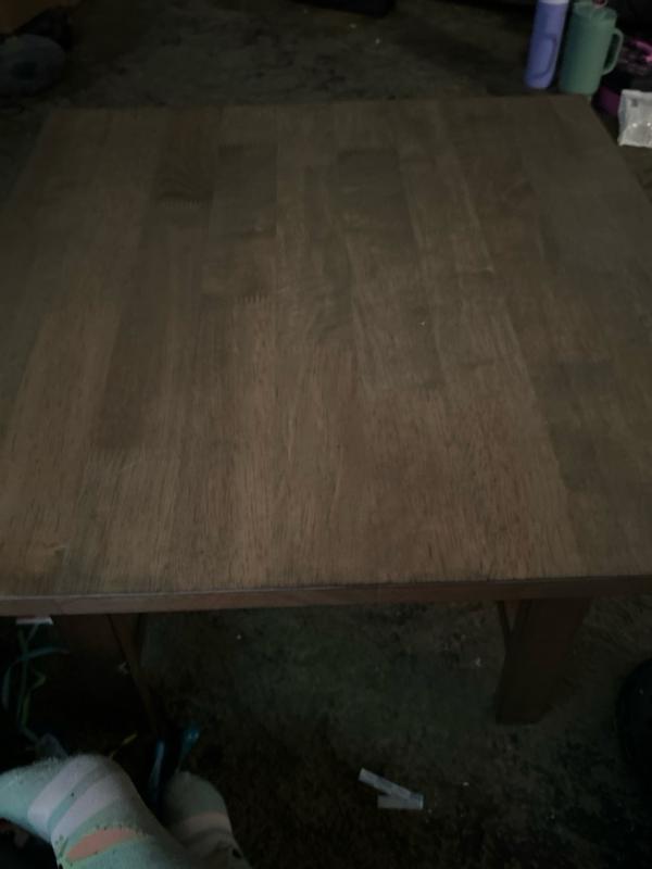 This table is so cute! Very easy to put together and makes a great side table. Not super big but a good size and it’s a little wobbly but still gets the job done!