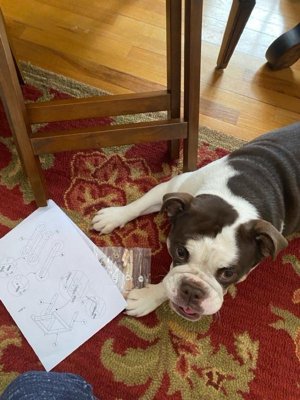 Love the look of this little table! Neutral wood finish, nice quality-probably not heavy, heirloom quality wood, but not cheap particleboard either. 20 inches tall, and roughly 21.5 inches by 21.5 inches. Assembly-eh, I didn’t love it, although it wasn’t the worst! Instructions took a few moments to figure out, but the most annoying part was needing to use an electric drill where the instructions showed using a screw driver. Since there wasn’t a pre-drilled hole to insert the screw into, it would have been a lot harder just using a screwdriver. Other than that, it didn’t take too long to put together once I grabbed the drill to use. Nice decorative accessory for any type of room!