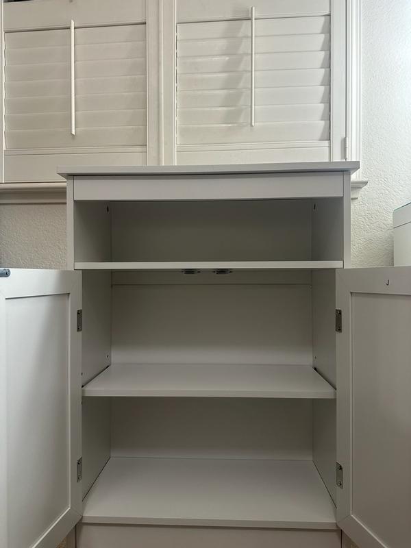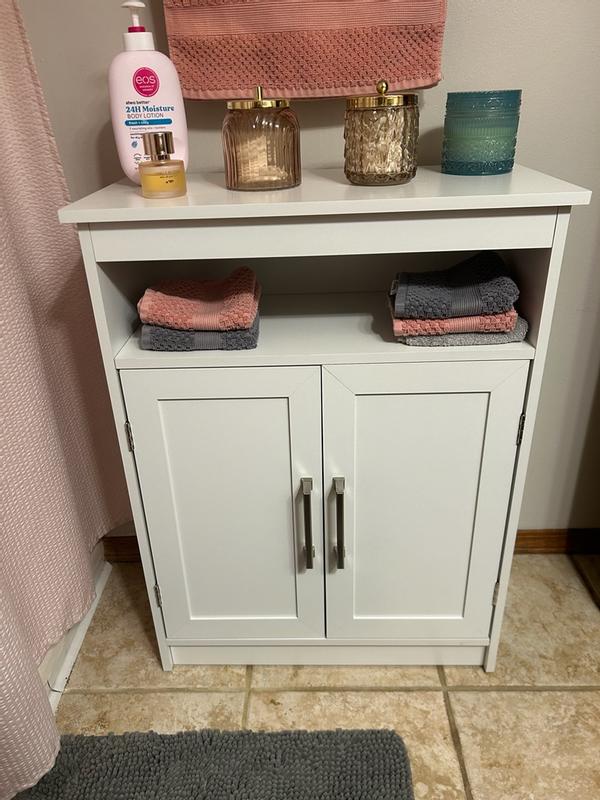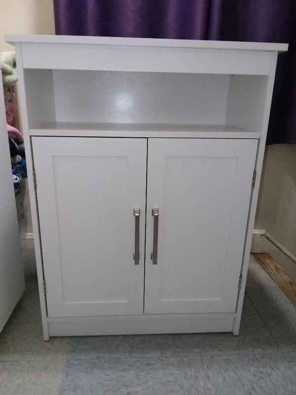This is such a nice addition to my bathroom! I have limited cabinet storage and was unsure if this would fit but it’s perfect and has a lot of space. The assembly took about 45 minutes and you will want two people for the doors but easy to follow instructions. Overall a useful option.