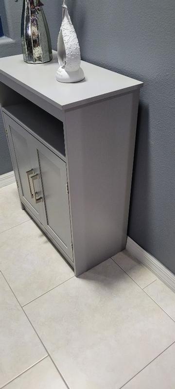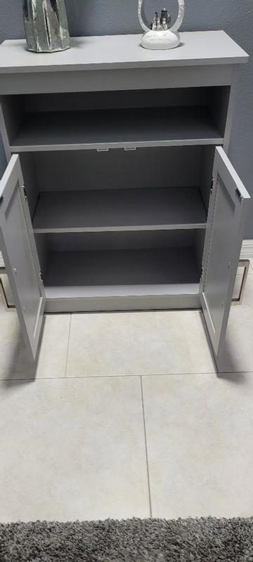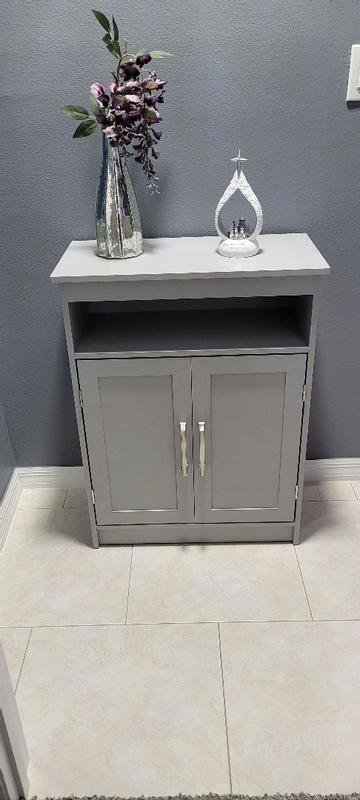 This bathroom cabinet is the perfect size for anywhere in the house, it looks very elegant and has great storage. Also, the grey color is very pretty and it was very easy to install.