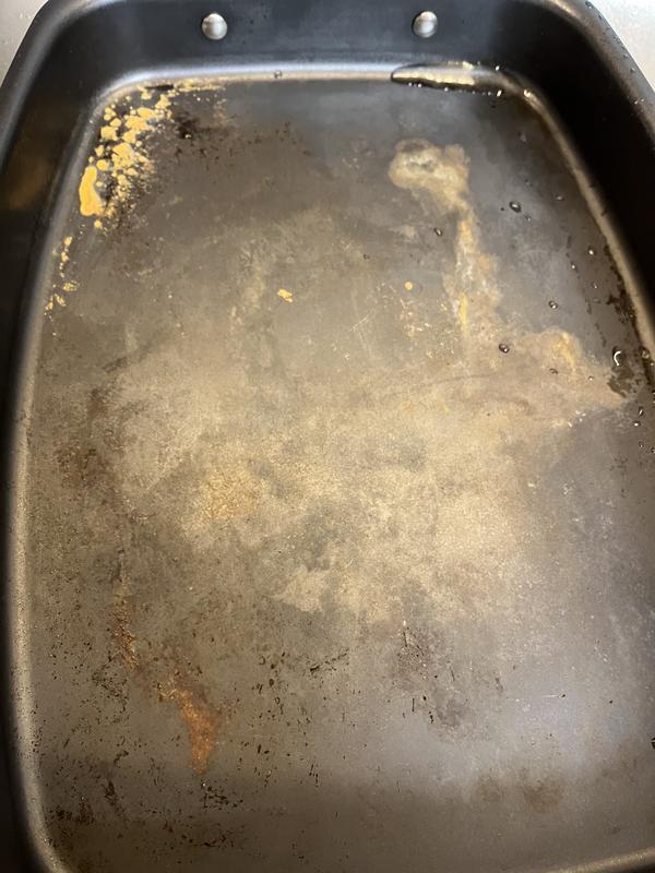 I’ve had mine for a while, and I absolutely love it!!! Now I’m buying another! They are really great pans, they don’t stick. If they do stick it’s my fault, I put the food in too early..but, it comes right off with some hot water….period. Then just give it a little oil rub and it’s great again. Love love love.