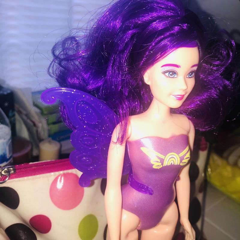 My daughter loved this doll! You just put water on the purple sponge and wipe the doll all over and watch her colors magically change! It’s so cool and her vibrant purple hair and fairy wings make her very friendly. Definitely recommend!