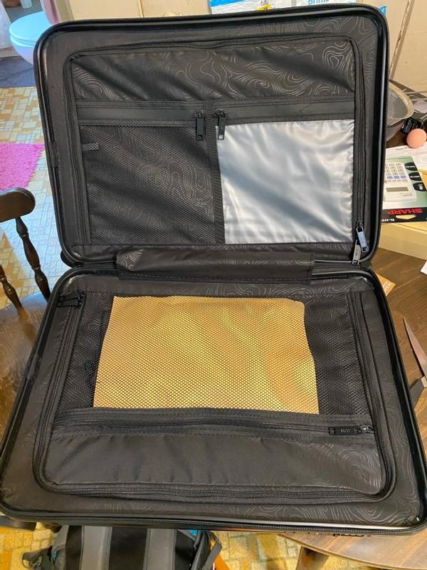 High-quality suitcase and I love the inner layout of the zipped compartments on both sides so nothing falls out upon opening!