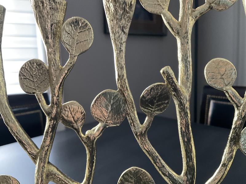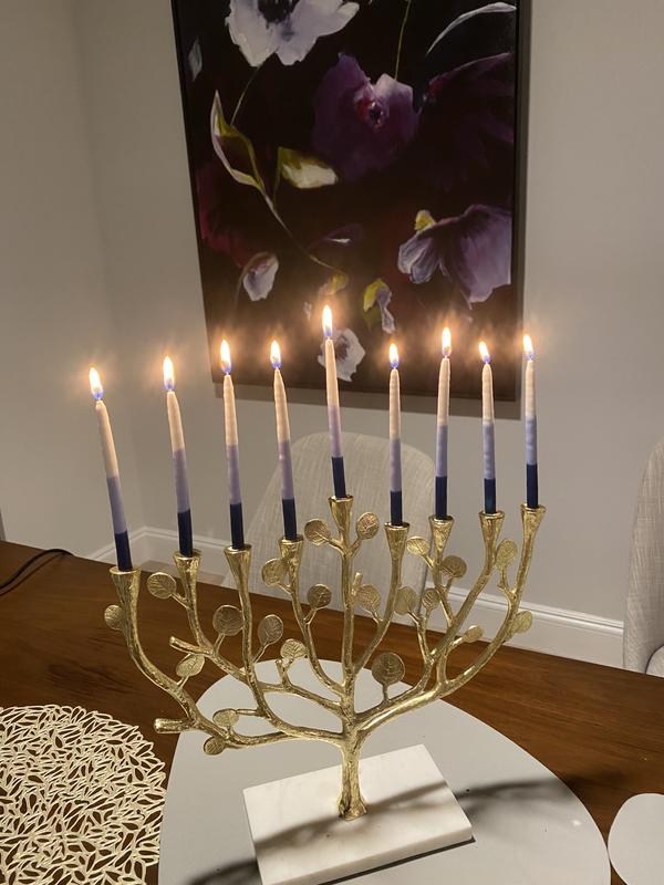 It’s a beautiful and elegant menorah and well-packaged. There was a small part where gold leaf didn’t cover it, but we decided not to exchange it.