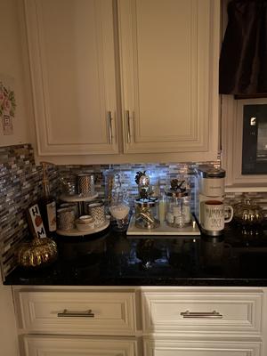 I bought the set of 3 in different sizes and it looks gorgeous ion my kitchen counter top .