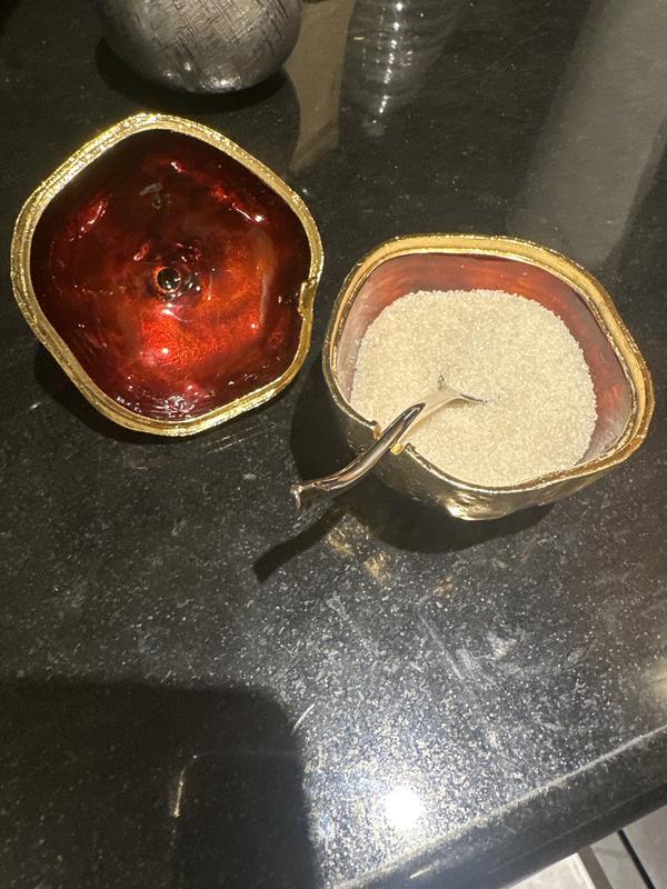 This pomegranate pot is so elegant and beautiful. The red enamel inside looks like a rich berried pomegranate. The construction of the entire item and its unusual spoon scream luxe, but refined. To me, it would be a bit large to use as a salt cellar (which others have suggested). I think using it to serve some condiments or compote would be how I'd incorporate it into my table. I purchased as a gift of thanks for a good friend, but I like it so much I think I need one, too!!