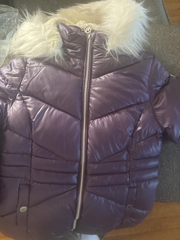 This MICHAEL Michael Kors puffer jacket features a faux-sherpa collar and MK hardware for a stylish and cozy cold-weather look .
