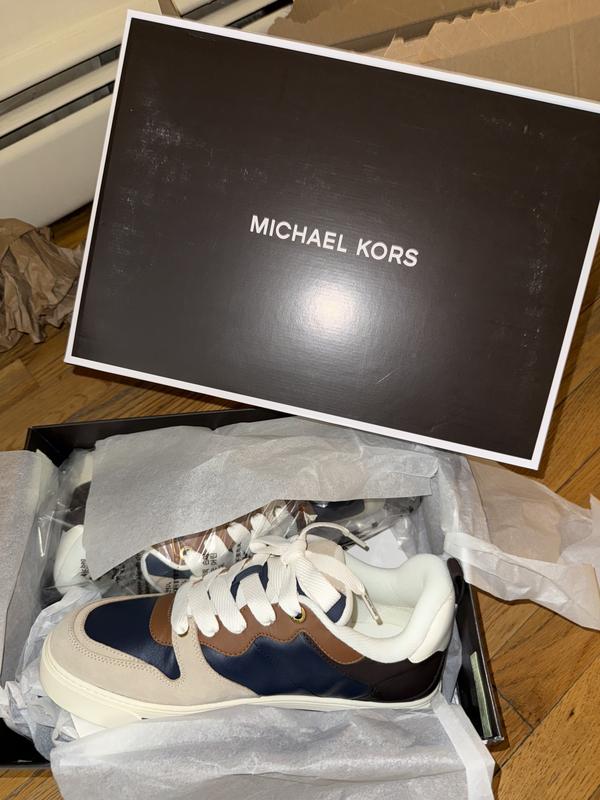 A mix of leather and suede plays out in a variety of tones on the Barett Sneaker by Michael Kors, presenting a look that is dynamic and bold.