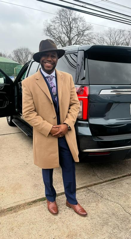 My husband looks great on it! I chose it because of the wool and cashmere combination and it is soft and warm.