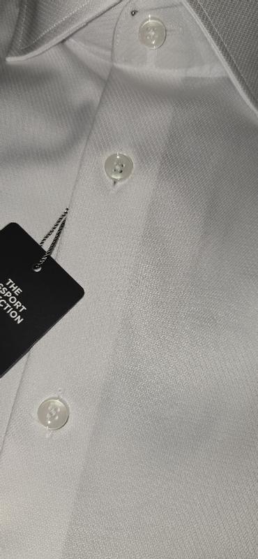This is a perfect and great fit, the cut is excellent and the sleeves are accurate. The fit is slim and relaxed, with generous fit at the chest. The quality of the shirt is top notch, the fabric is soft, comfortable, and has good quality stretch cotton blend.