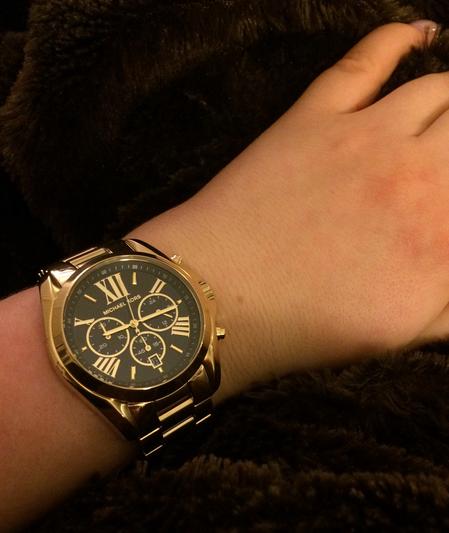 Black and gold creates a luxe timepiece from Michael Kors' Bradshaw collection.