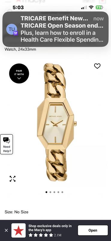 Modern and sculptural, Suri is a standout jewelry-inspired accessory with its asymmetrical case design. The gold-tone case and proprietary faceted curb link bring together clean lines and a touch of edge, making it a versatile piece for day-to-night wear.