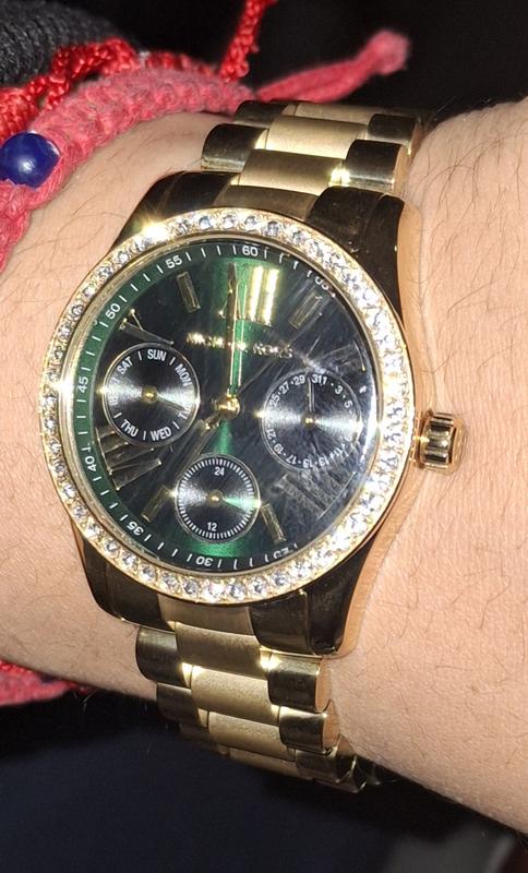 A timeless icon with a modern update, the Lexington Lux watch features a scaled-down 33mm case for a refined fit, while its signature three-link bracelet and glitz top ring add a touch of glamour. A rich green dial contrasts beautifully against the gold-tone stainless steel finish, delivering effortless sophistication for any occasion.