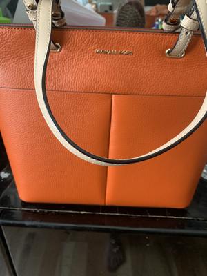 Love this bag. I got it in black with tan handles. This is probably the most practical MK tote I ever had. Unique handles, sturdy, 4 feet, lots of pockets inside out, still big room inside the bag. Nice pebble leather.