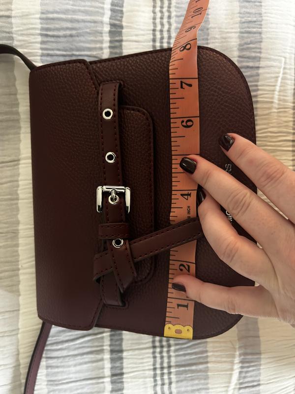 Beautiful stylish cross body bag. Not too big and not too small. I can fit my cell phone and a wallet comfortable as well as my keys and lipstick.