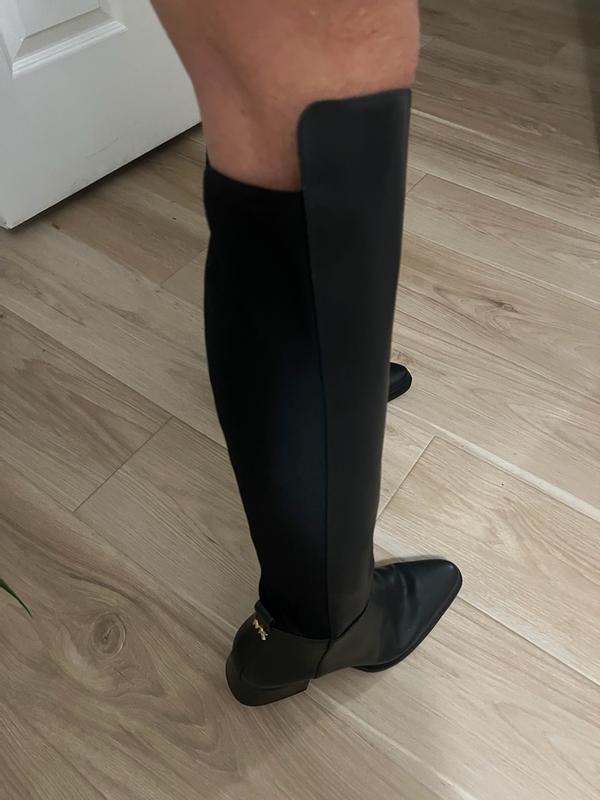 I have been looking for a pair of high black boots, but struggle with ones that aren’t tight on my calves. These boots have the ability to stretch while still looking classy. I love that these are comfortable to wear all day long without a high heel on the boot and that they come up high enough to keep my legs warm on these cool fall days.