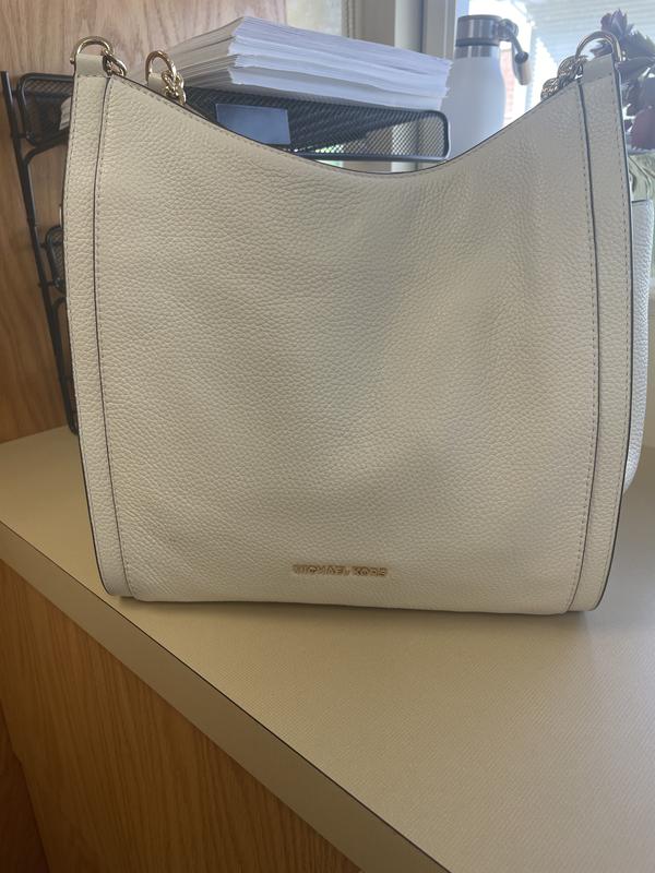 I love this bag it's a different style than my other Michael kors. I love the pebbled leather. I purchased it in black. It has beautiful silver accented along with leather straps that go over your shoulder.