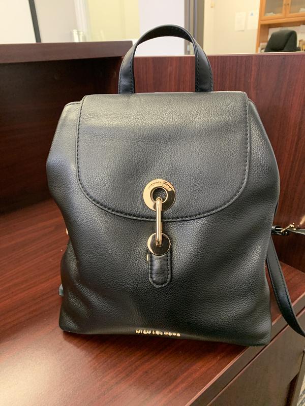 Beautiful Black Backpack. Leather is great quality. Fits 11” iPads. Fits on the shoulder on one side and fits comfortably as a back pack. very pleased.