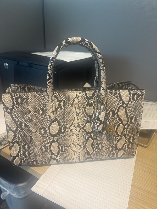 As always, Michael Kors does not disappoint. The snake print and colors are beautiful. It is well crafted and stylish. I love the easy carry-handles or it comes with a shoulder strap if preferred. A large entry with the ease of stylish magnetic closure. It has a large inside zipper pocket with plenty of room. A great look for all seasons. it’s the right purse for anyone who loves fashion. I would have loved finding a matching wallet on sale at the same time. MK, this is a Home Run!!!
