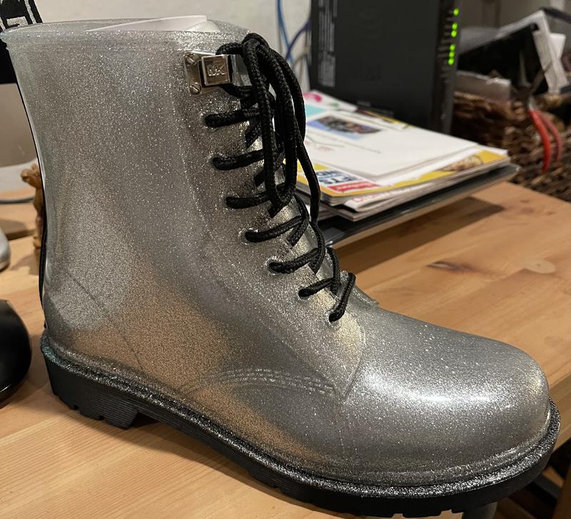 So torn, these are everything! The sparkles are amazing and I love them, I got them in two sizes while on sale to figure out the best size for thick socks. The 7 fits closest to my real size but, they’re very stiff on the top of the ankle and top of the arch/foot. Only worn them in the house so far. But I’m leaning on keeping them!