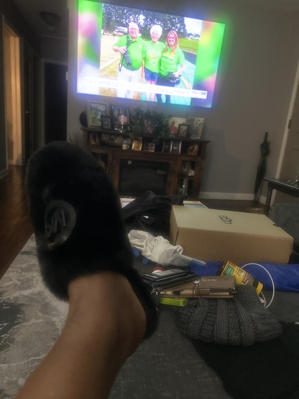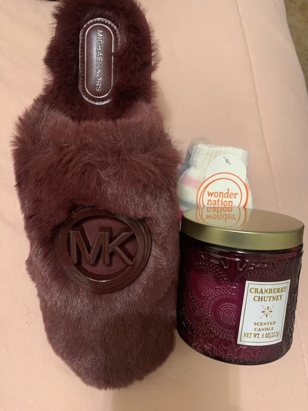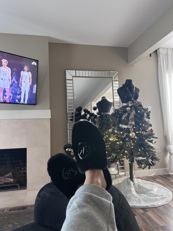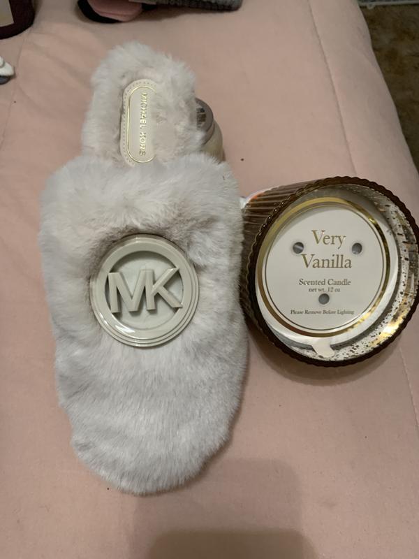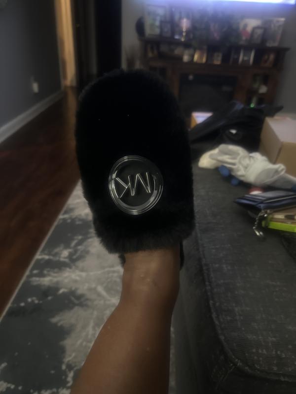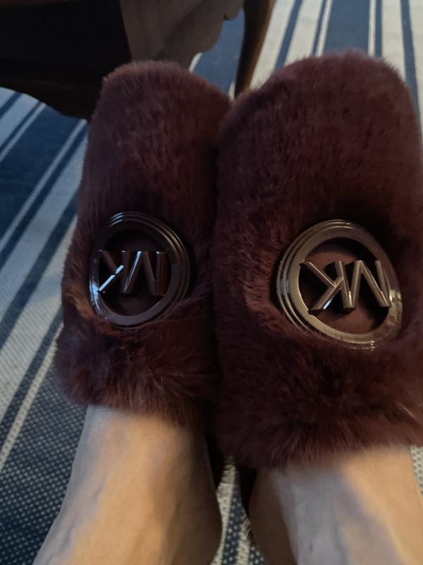 Very nice signature MK color and soft fur although the fur sheds. Comfortable house and out door slippers. The emblem looks really nice.