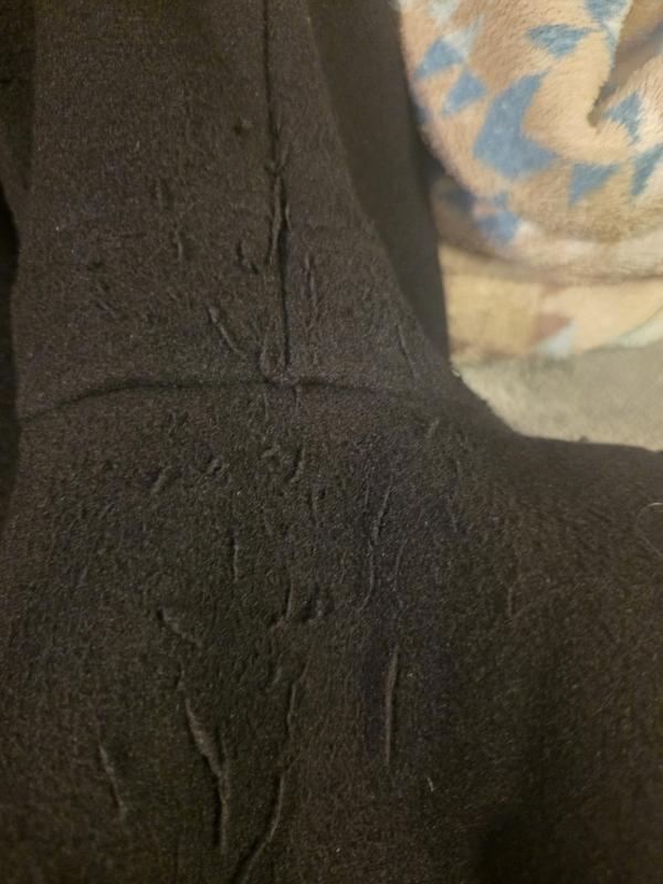 The material creates lent all over when rubbed together. Poor quality coat, wouldn't buy again.