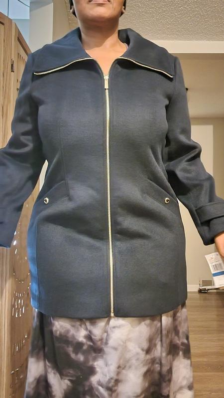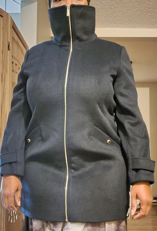 I was looking to update my black winter wool blend coat. I saw this on sale and decided to give it a try. It is a beautiful coat that can be worn with dressier work clothes or jeans. Sometimes I want to wear something dressier than a quilted or puffer coat. In fact wore it for the first time yesterday to church. It was warm enough for the 32 degree weather yesterday. The material is soft and rich looking. I loved it!