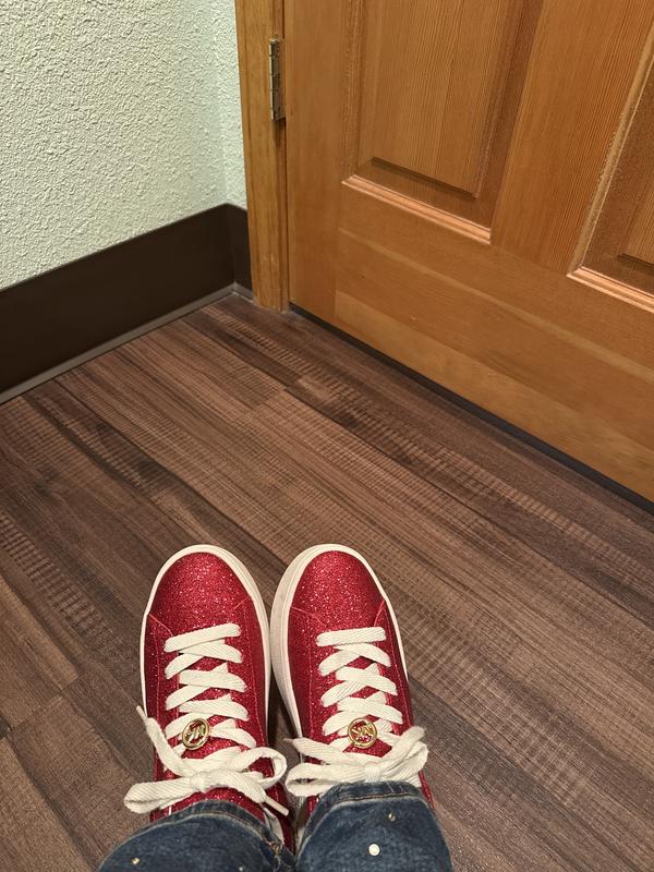 Purchased the sparkly red ones. Love the look but there is a spot on the top of the shoe by the MK circle that pinches. Hopefully will figure out how to get rid of that. Otherwise I love the shoes they are comfortable.