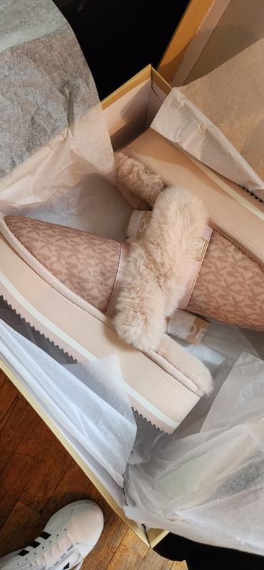 Tried it on & I already loved this Fifi Signature Logo Nylon and Faux Fur Platform Slipper. I got the brown color & will buy the cream color when price reduced. Very comfortable like walking in the clouds & well-made. MK is always have the best quality products.