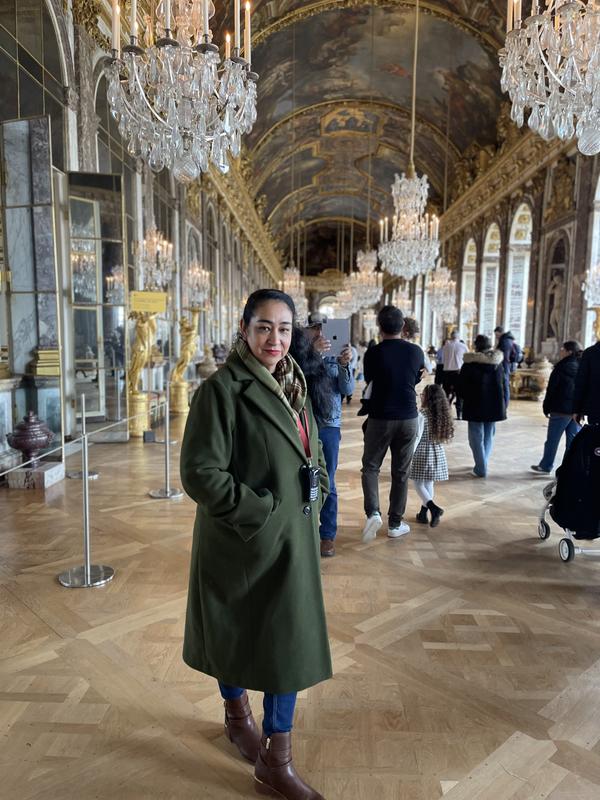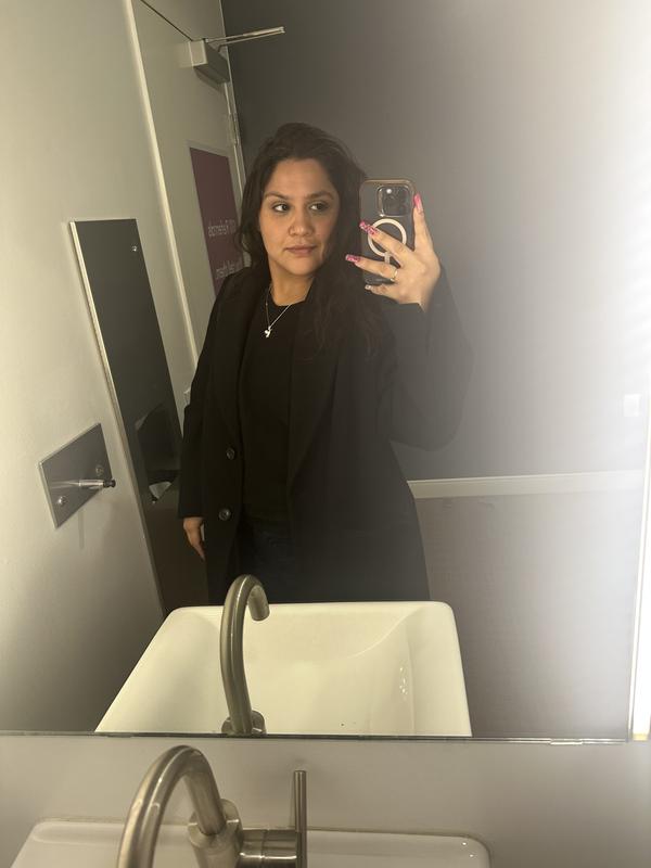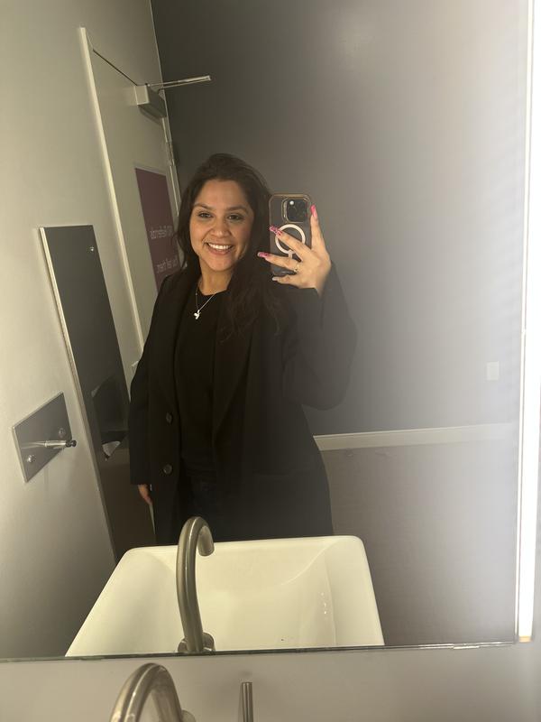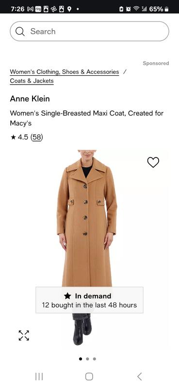 I totally love this gorgeous coat. The blue color receives so many compliments. It fits well and has a great line. Was lucky to purchase it at a very good sale price. Great for early spring cold weather And a change from my black winter coat.