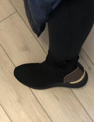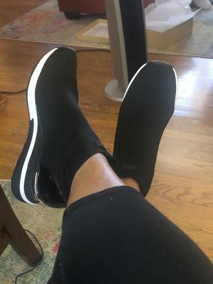 I was hesitant about the heel of the boot, but I decided to give them a try, and I'm glad I did. They're very pretty, comfortable, and stylish. I own a lot of MK sneakers, and my favorites are this stretch knit sock model, because they're very comfortable and you can wear them all day. I have them in almost every color because I love them!