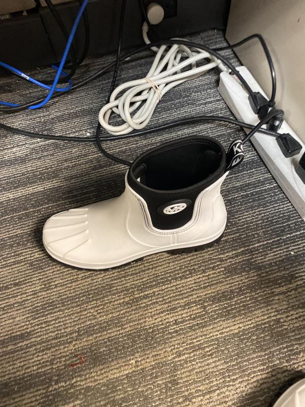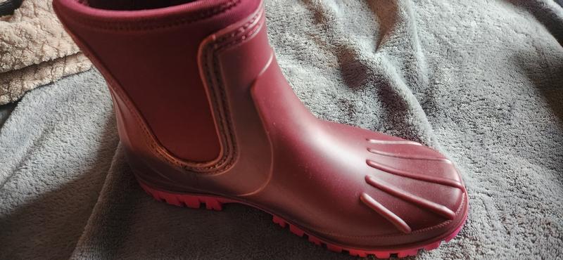 I was so excited to get these boots but my excitement turned to discouragement as soon as I opened the box because these boots STINK. I do not understand why these boots smell so bad and they are really uncomfortable. I also noticed that the boots I received had probably already been worn. There was tape of the bottom of the boots and worn areas. I really needed these boots because of all of the rain we have been having so I ended up keeping these stinky boots and decided to put some orthotics into the boots to help with support. It does the job but I still wouldn’t recommend these to others. Sorry.