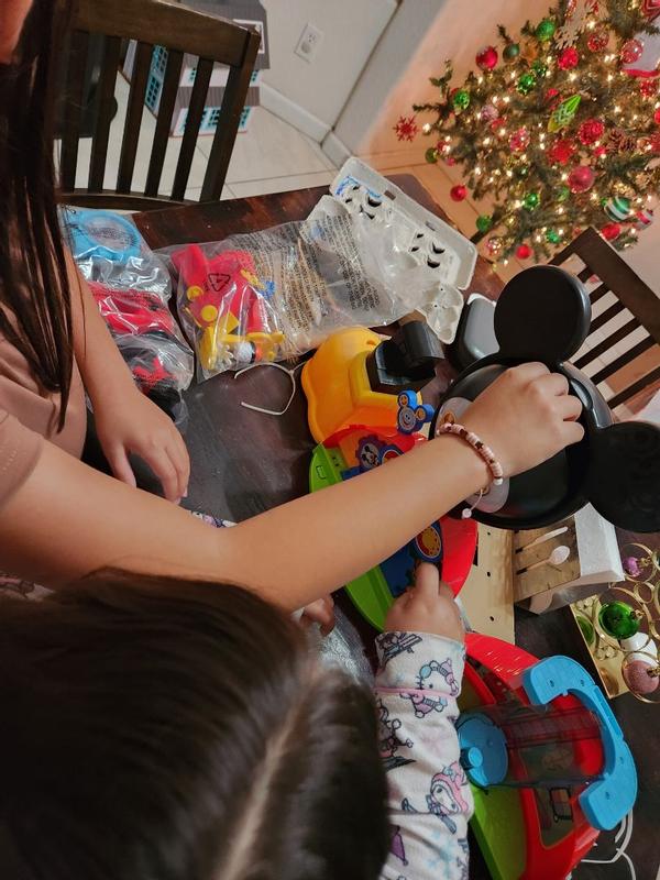 Cute toy, bigger than expected! The quality is amazing and sturdy. My kids love Mickey Mouse and have been playing with this toy all day. Highly recommend
