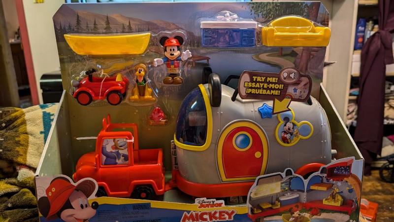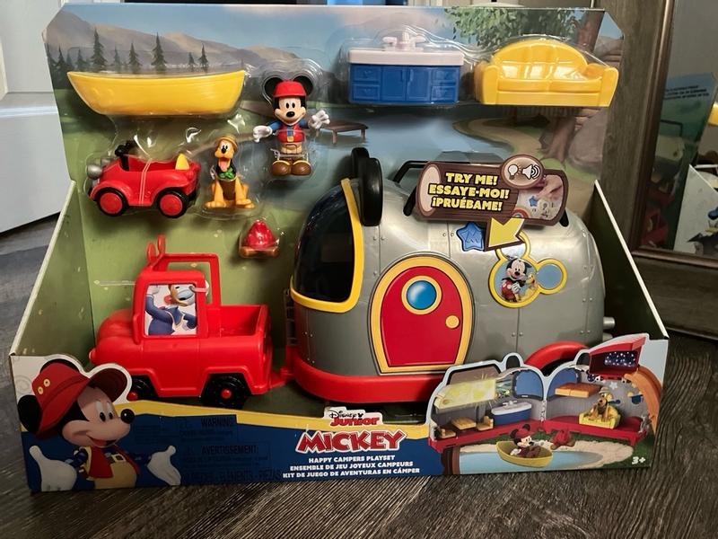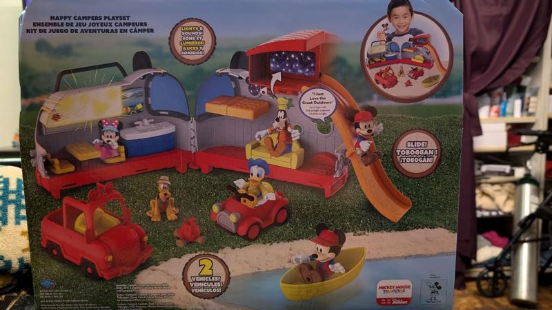 The Mickey's Happy Camper Playset is great for the little ones. It has lights and sounds. Mickey and Pluto are included with some more accessories to use for play time. The colors are vibrant. The added car and boat add to the fun . It is made well and will provide hours of fun and imaginative play.
