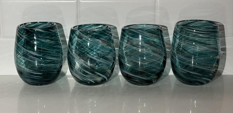 Beautiful glasses. Heavier than I expected. Love the swirls with a sparkly gray amongst the blues/teal.