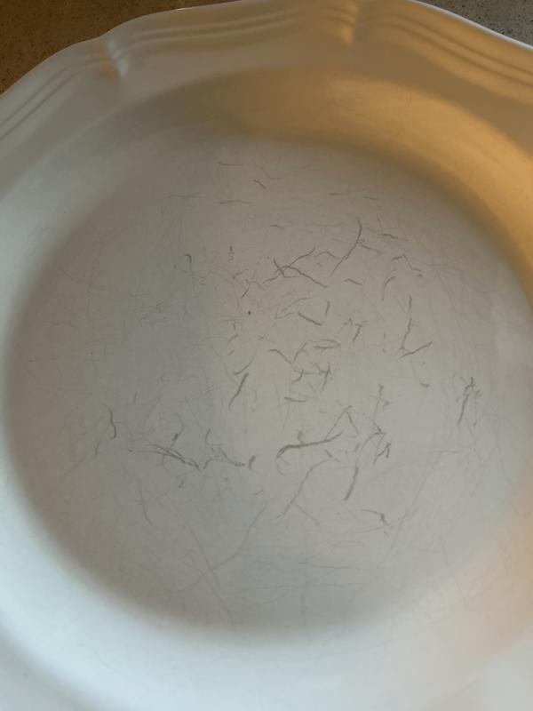 I bought this dinnerware set in May of 2025. I am replacing them in December of 2025 because they’re covered in gray silverware transfer marks. While I can buff most of the marks away with Barkeeper’s Friend paste, I shouldn’t have to. While these dishes are pretty, they are poorly made and I do NOT recommend them.