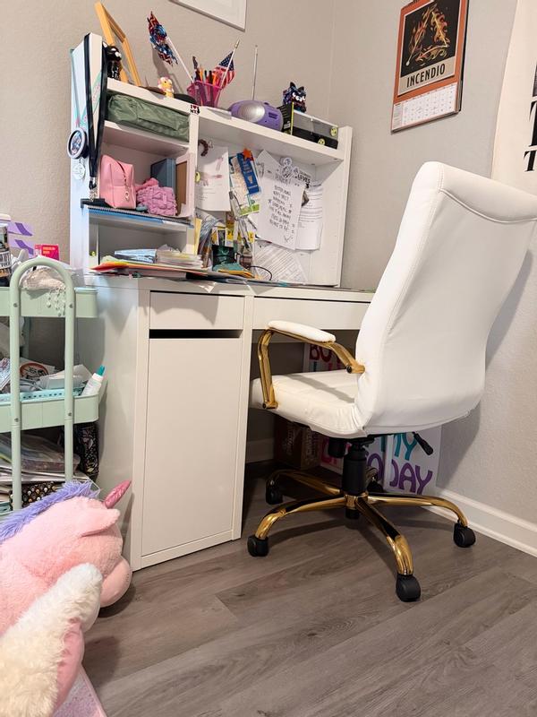 I got this Flash Furniture high back executive swivel office chair for my daughter as she had been complaining about her previous desk chair. The chair was quick and easy to assemble. My daughter absolutely loves it and says it is super comfortable. Her only complaint is that she wishes the arms were lower so she could push it fully under her desk.