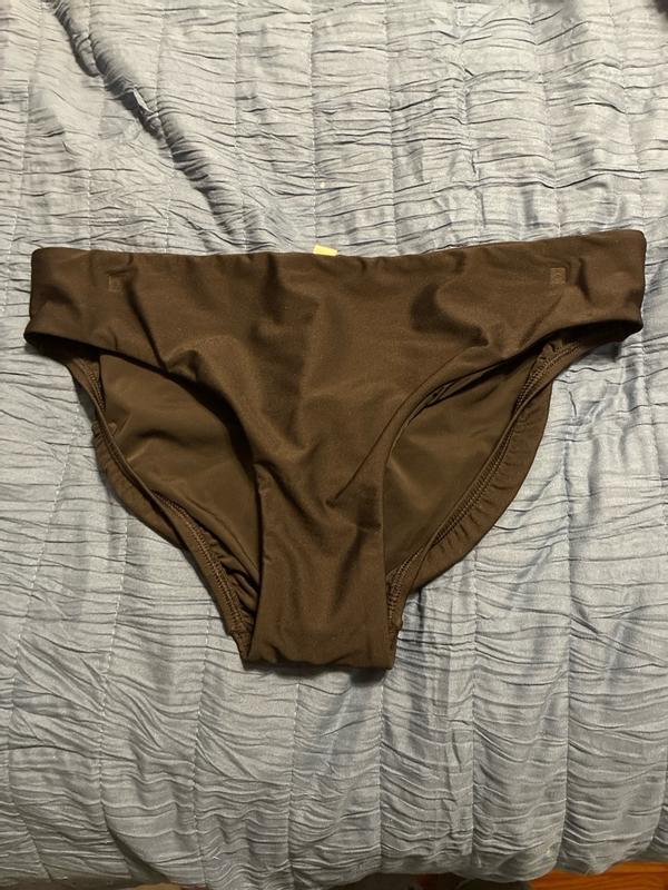Very nice swim suit bottoms. The quality is good, not see through at all and a generous cut for good coverage. They fit true to size and are complimentary to the figure. I love that these are made from recycled nylon, nice that fabrics can be made from repurposed material. The are cute and will be versatile matching many bikini tops. Cute for the beach!