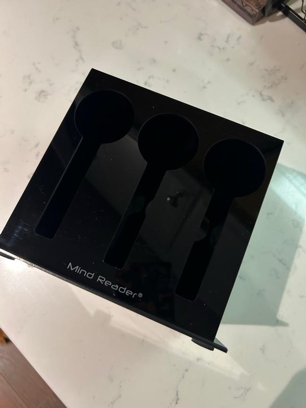 I really like my mind reader foundation collection 3 compartment utensil dispenser. I love that it holds knives, spoons, and forks. It easily holds 24 pieces of silverware/plasticware. It fits easily on my counter and works great for easy access to plasticware when my kids pack their lunches.