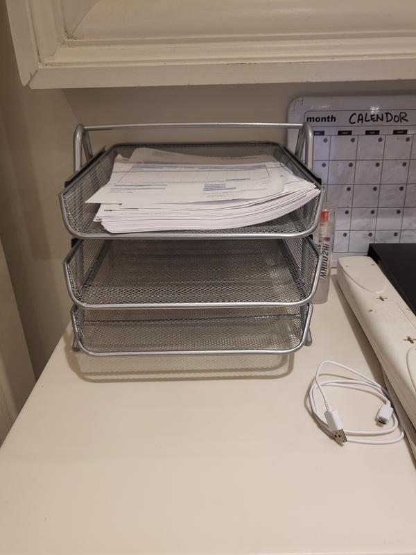 This is the perfect way to keep my home office organized and tidy. These organizers are made with durable materials and are easy to put together with just a screwdriver. The trays slide in and out, making it easy to store files in here. The silver color is simple and works well with all types of room designs. The trays themselves are sturdy and big so that they can hold multiple folders and files. These really help save space in my office because I can keep lots of papers, files, and folders in one vertical space as opposed to all over my desk.