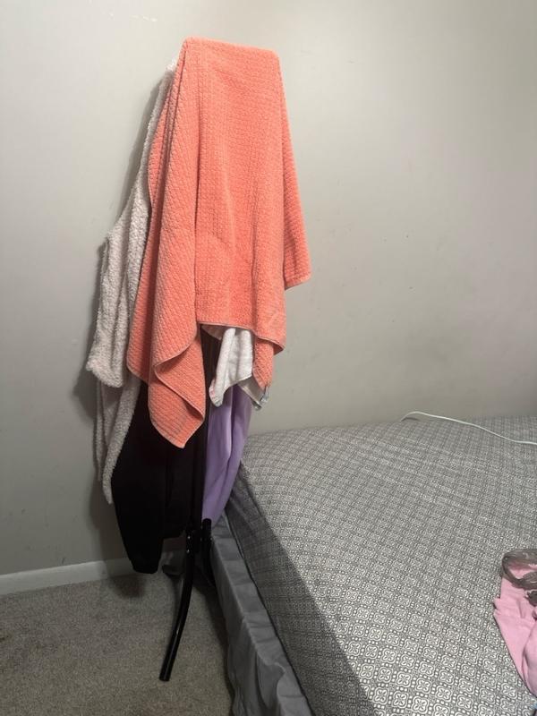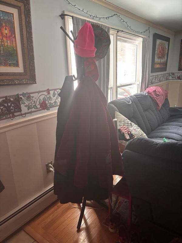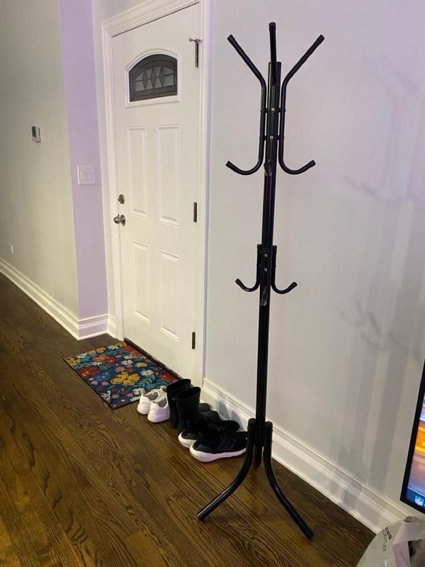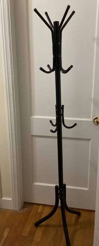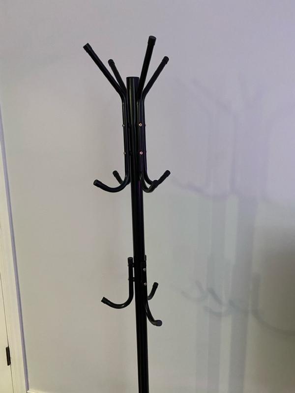 I’m giving this 3 stars because in the end, it’s just a basic metal coat rack. It does it’s job, but it’s nothing special. This rack was hard to put together with just one person, you definitely need a second person to help hold the poles in place while screwing them in.