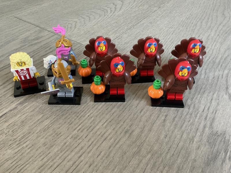 I love this set of minifigures they are all super cute. I only bought 1 because I heard that duplicates are common. I got the Turkey guy he's pretty cute he came with a pumpkin.
