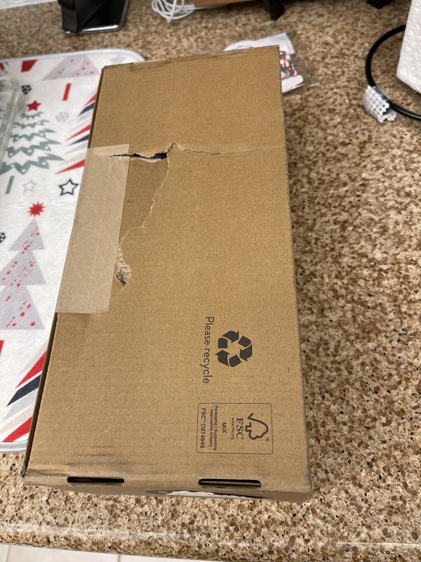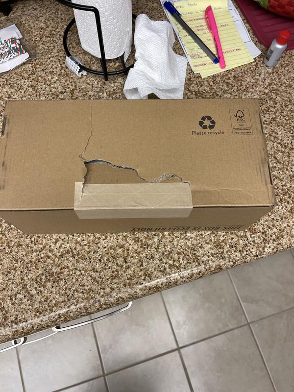 Box arrived on a wet day busted. As if a fist had been slammed into it. I am returning the slippers