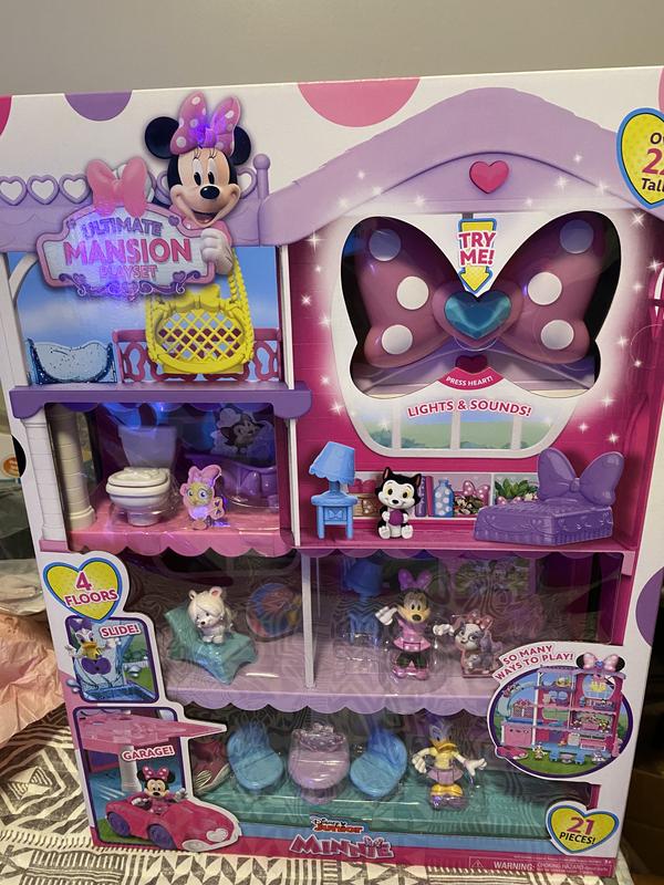 Such a cute dollhouse! I got this for my 3 yr old granddaughter. It was simple to put together (minus the slide that doesn’t want to stay on) and has held up really well. She LOVES it and plays for HOURS!!! She plays make believe with Minnie and Daisy for hours on end. I think the slide should snap in way better than it does. Love the light in the dining room, it definitely added a super cute flare to it!