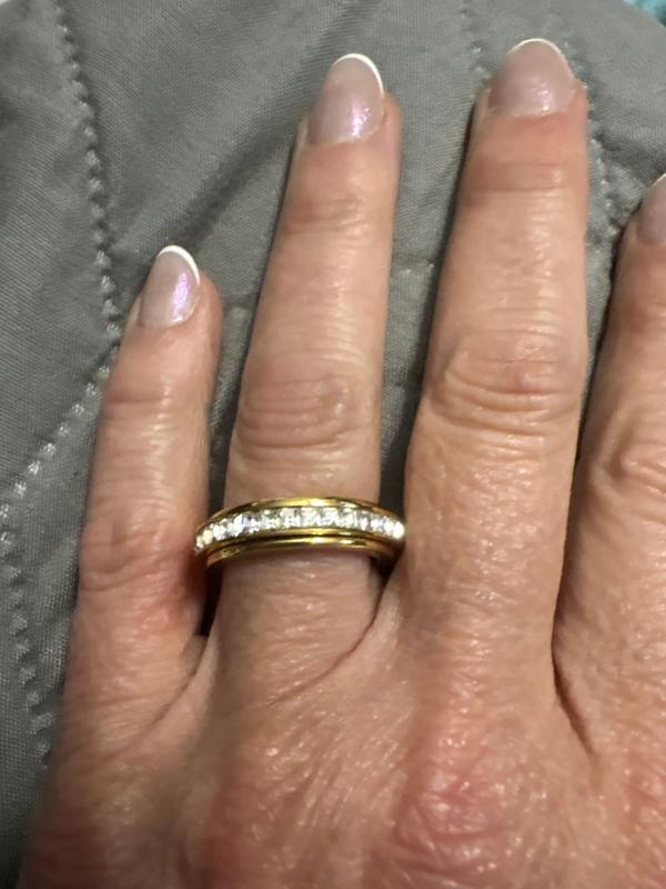 This ring fits well and looks great! Just the right amount of sparkle.